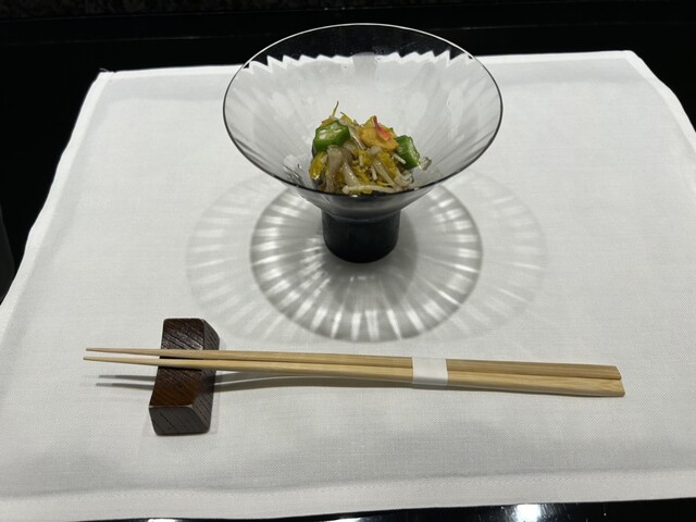 先付(雲丹 米茄子 茸 ゼリー掛け)