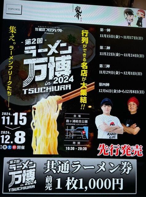 タッチすると今度は「第2回ラーメン万博2024in土浦」共通ラーメン券前売1枚1000円の表示…