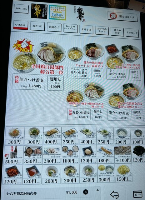 画面を横にスライドして、特級龍介つけ蕎麦1,480円をポチります。