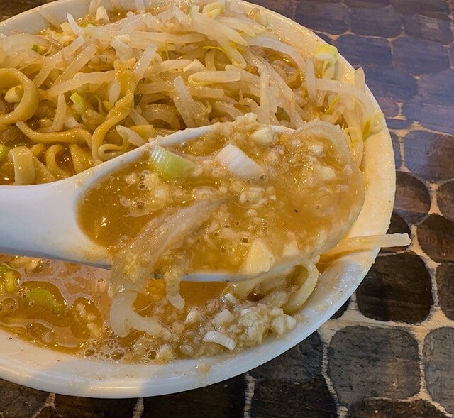 刻みニンニクは普通は強ぎるのですが、スープが濃厚なのでバランスが取れます。