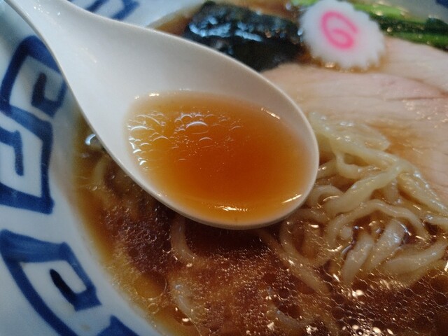 注文後、10分ほどで到着。大好きななるとものっていて、見た目グッド。キラキラ光って見えた。若干出汁が弱めで醤油辛めのラーメン。旨味が少し少ないか。麺は、ツルツルで、食べ心地がよい。とてもあっさりなのに後引きで、一口食べたら一気に完食。