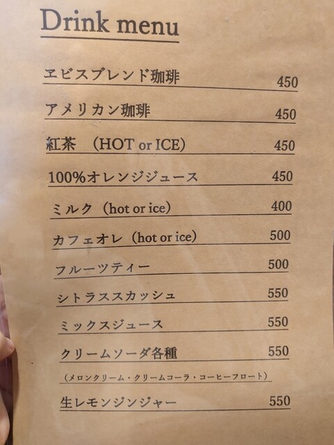 ヱビスブレンド珈琲 450円、シードル ドライ550円、シードル ロゼ 500円✨ドリンクも抜かりなく。