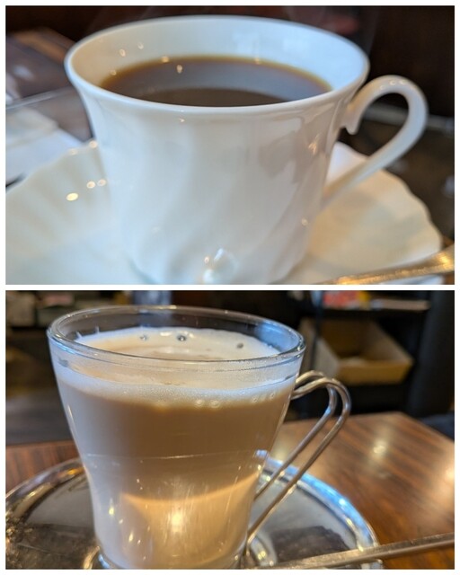 ホットカフェオレ 550円、アメリカン450円✨️珈琲もかき氷に合います♪