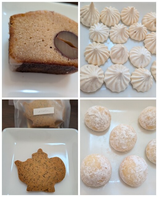 後日頂いたケーク オ マロン500円、メレンゲクッキー250円、ブールドネージュ350円、紅茶クッキー350円!サクサクだったりしっとりだったり絶品焼き菓子。栗のパウンドケーキは裏側も栗がゴロッと!