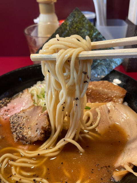 溜まり醤油を使ってる少し甘さも感じるダブルスープの濃いめのカエシはまさにここのオリジナル。それに黒胡椒が効いてるからコアなスープに仕上がってます。