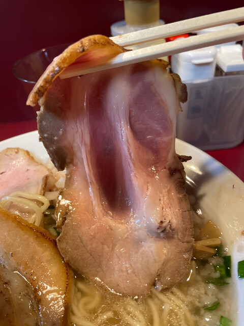 そしてチャーシュー麺を超えたこの丼顔。普通のチャーシュー麺は同じ肉だけど、こちらは3種の肉だから他でなかなか出会えないです。