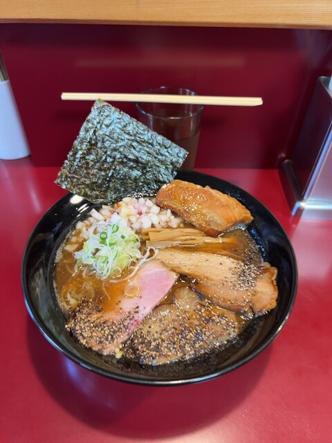 今日はいつもはやらない魚粉追加をやりました。肉出汁の風味が消えてしまうのか不安だったけどどちら旨みも感じれてやって正解❗️流石です❗️