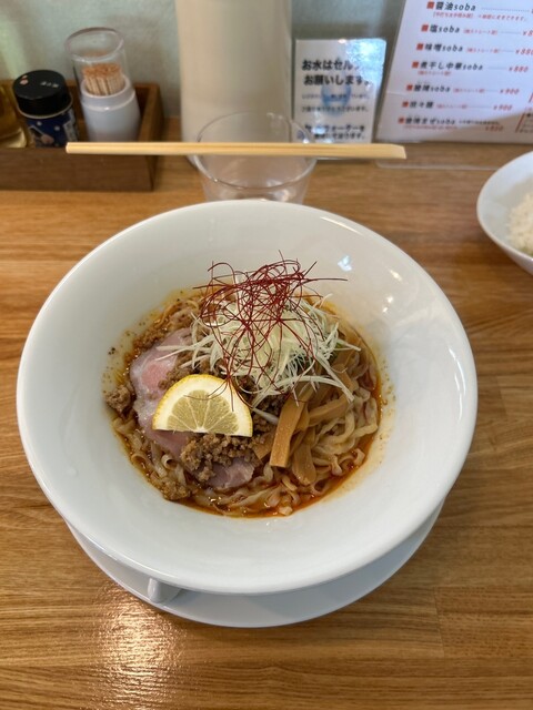 その他レアっぽいチャーシューに味のついてる挽肉、太いメンマとネギも完璧。アクセント的についてるレモンは絞るか迷ったけどいい感じの爽やかさな味変も出来て良かったです。そしてこの味は追い飯が本当に進んで相性抜群❗️