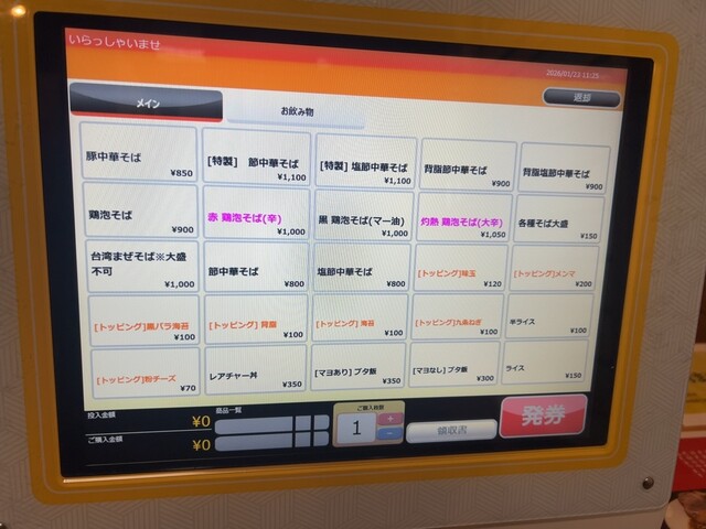 朝ラーなんて何年ぶりだろう。そしてここは朝6時からやってます。今日は6時20分くらいの到着でした。朝メニューは券売機ではなく現金先払いです。