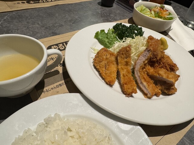 ボリュームあって熱々の鉄板で提供される、ハンバーグランチとトンカツランチにしました。