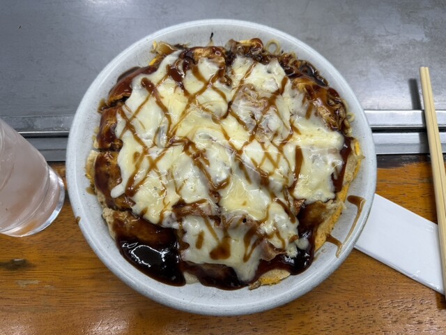 キャベツは細切りで麺はパリパリすぎず王道ですが、美味しかったです。ただ、ボリュームは想像以上でした。1人ワンオーダーのようですが、鉄板焼きでもOKのようですので、自信のない方はお好み焼き+鉄板焼きでも良いかもしれません。