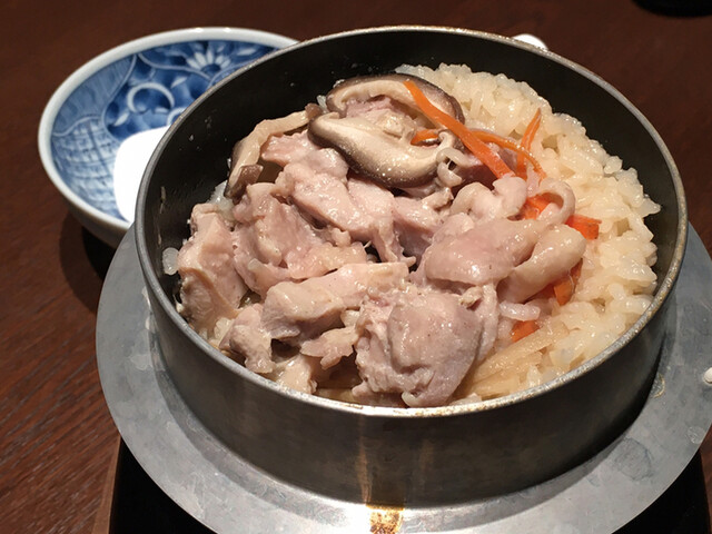 締め飯には鶏の釜飯を願いしたの。テーブルで炊き上げるタイプよ