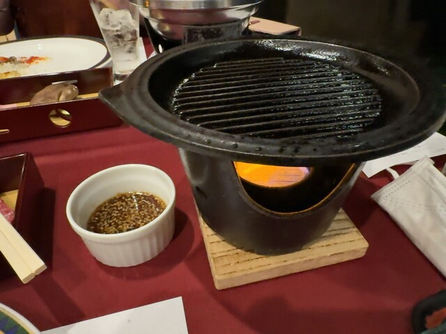 近江牛コンロ焼き、椎茸、青味、ポリネシアンソース