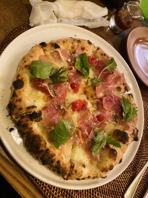 日曜17時30分に予約して久しぶりの訪問。今回はイタリアワインのソアベが無かったので、シャルドネをボトルで頂きます。ホタテとバジルのタルタルをクラッカーに載せて、のんびりワインを頂きながら、マスターに近況報告を済ませます。人気メニューのタンドリーチキン(ハーフ)やマルゲリータピッツァを食べ終わる頃には、ちょうどボトルも空になったのでお会計頂きました。お支払いはPayPay使用可能で4500円でした。18時過ぎには予約無しのお客様は断られていたので、予約をお勧めします。ご馳走様。