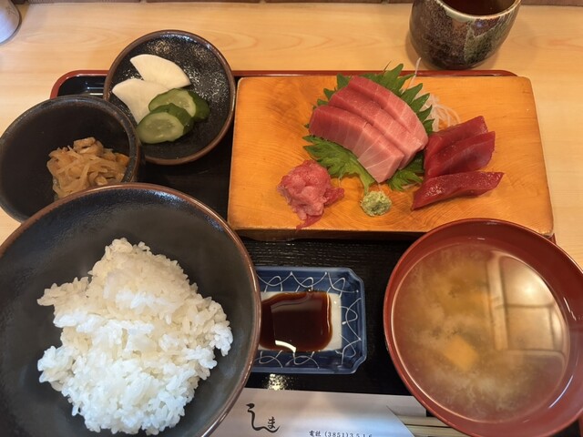 中トロ、赤身、ねぎとろ、とても美味しかったです。小鉢は切り干し大根、お漬物は大根ときゅうりです。