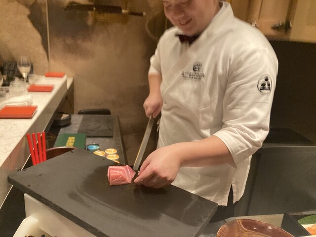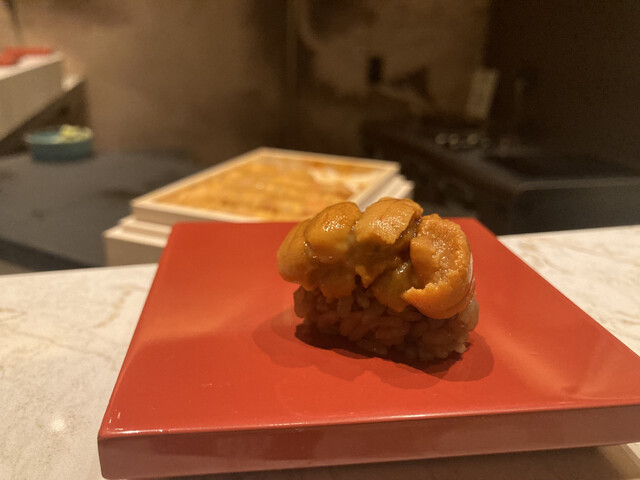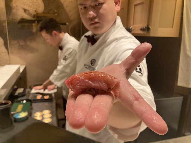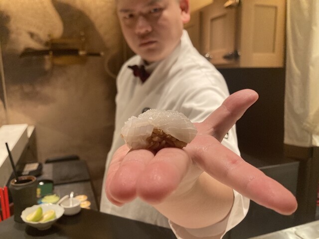 一品料理のあとに握りがスタート。シャリは酒粕酢?を使用したインパクトのあるもの。