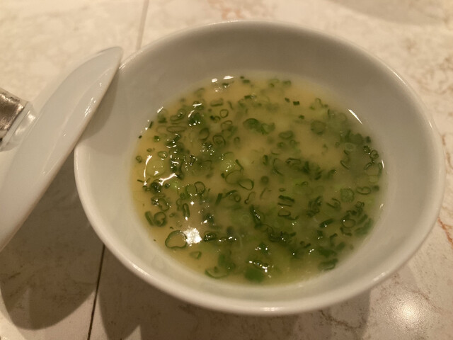 まぐろと椎茸とネギの旨味たっぷりスープ。まぐろの脂で最後まで熱々です。