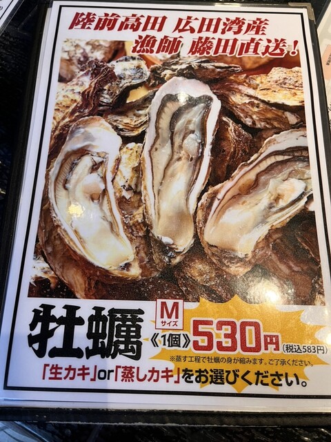 追加で、おすすめされていた陸前高田の牡蠣を生牡蠣で注文しました。