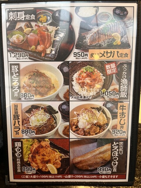肉めしの部分は、どうやらローストビーフ丼がメインのようで、こちらのお店の推しメニューのようでした。海鮮めしは、日替わりでもサバカツだったり、鮮魚を使用した定食がたくさんありそういった意味なのだなとやっと理解しました。