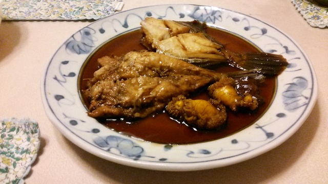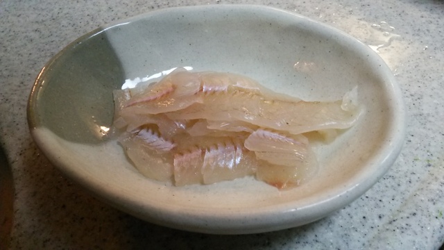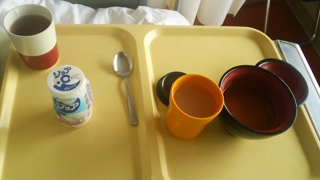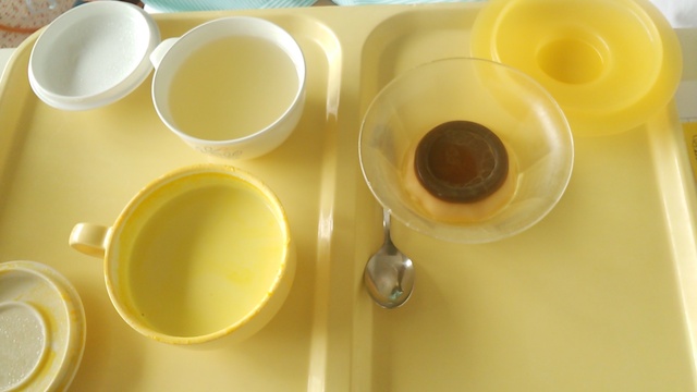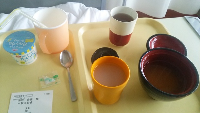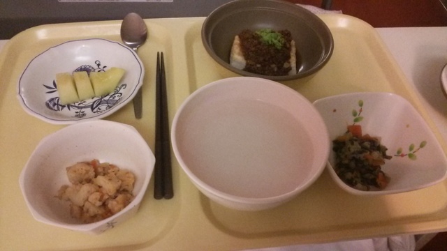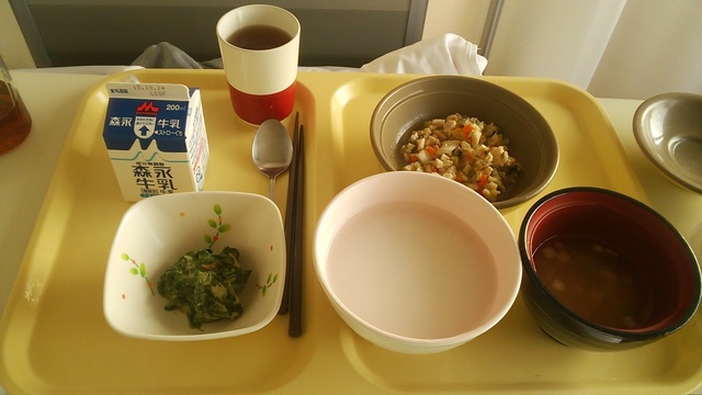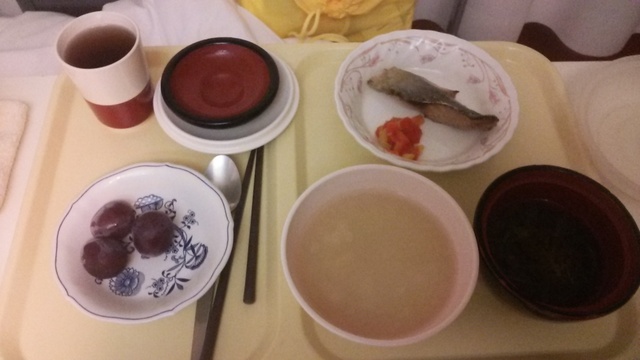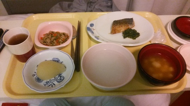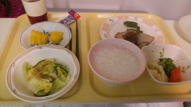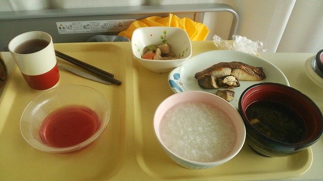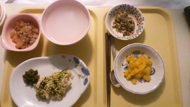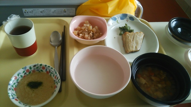 術後3日目の夕食(三分粥&白身魚の菜種焼)