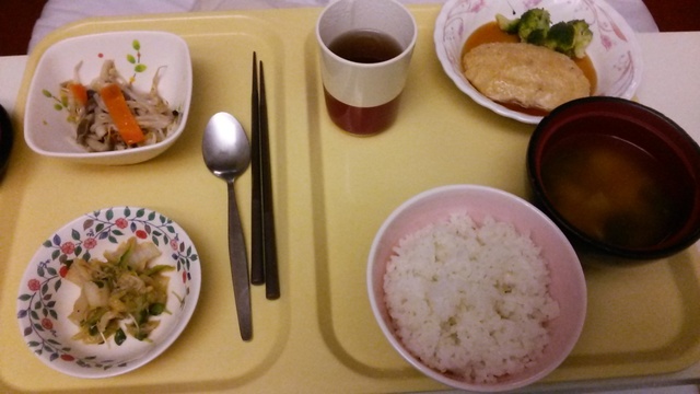 手術2日前の夕食(ツナ入豆腐ハンバーグ)
