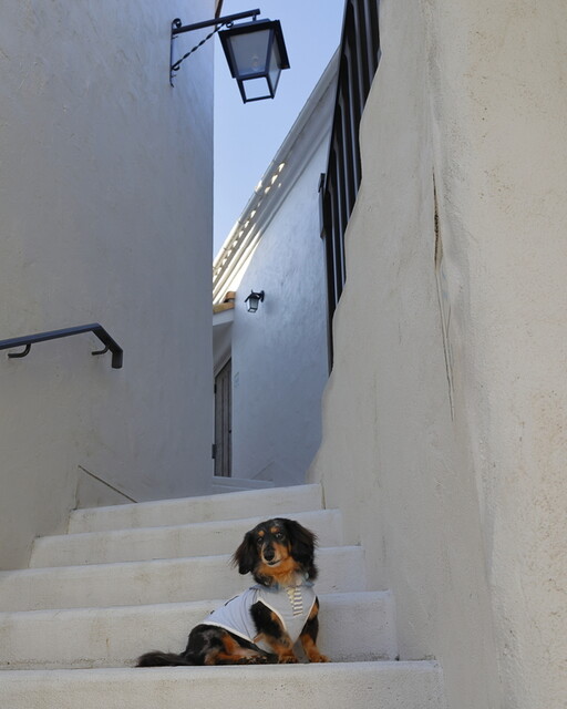 しかも、朝早かったので、人がほとんどいなかくて、地中海村はほぼ貸切り状態。さっそくお部屋にとって返して、まだ寝ぼけている愛犬を叩き起こして、お散歩することに。愛犬にとったらいい迷惑ですが(笑)