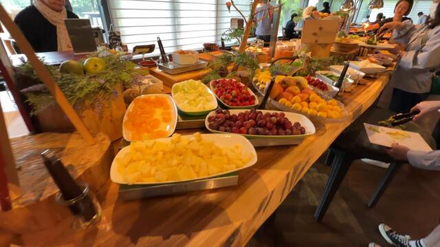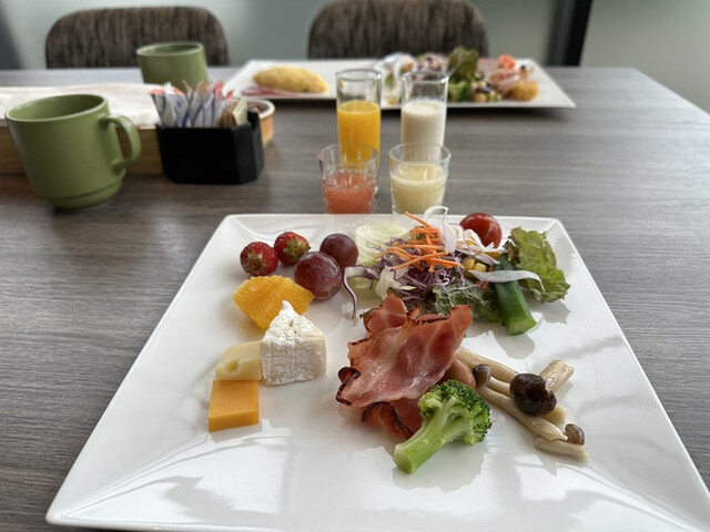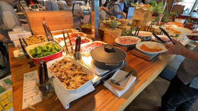なので、朝ごはんぐらいは優雅に、と、少しお金をプラスして、隣接するマリオットホテルの朝食ビュッフェを食べにいきました。(もともとラフォーレ修善寺の朝食ビュッフェが付いている宿泊プランに、確か1500円ほどプラスすれば、切り替えることができました。)