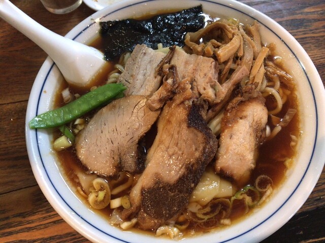 ビールが屆いて14分後、待望の「チャーシューワンタンメン」「大盛」が屆きます。この一杯に就いて、スープはどうだの、麺はどうだの、具材はどうだの、と云ふ分析的な事は云ひません。それこそ野暮と云ふものです(それに之だけの長文をiPhoneで書いてゐると、何だか疲れて來ましたし)。たゞ初めて食べるラーメンであるのに、不思議と懷かしい思ひがしました。頗る美味である事は論を俟たないです。