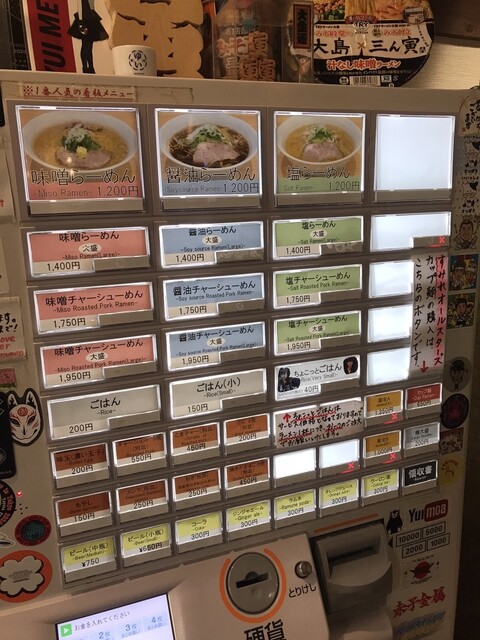 13時51分に御店に到著すると外待ちが四名です。暫し待ち、14時5分に入店出來ました。まづは券賣機にて、チケットを購入します。私の註文は以下のとほりです――。