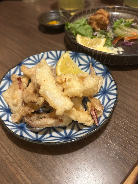 繫華街にある居酒屋でハッピーアワーもありメニューは幅広いお店です!お目当てのやりいかの活造り!これは美味すぎる!イカが甘いし食べ終わった後の天ぷらが最高!!馬のにぎりにあか牛の炭焼きは最高ですね!!地鶏の炭焼きの後の〆のガーリックライスは地鶏の旨味が染みてます!旬のと熊本の名物を豪快に楽しみました!また来ます!!