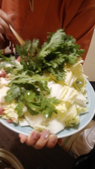 次はヒラメの刺身の小鉢、それから普通の刺身盛り合わせ、次にカレイの焼き物、そしていよいよウズラの鍋、お姉さんが全部やってくれます。野菜もたっぷり、なるほど、噂のとおり旨い。