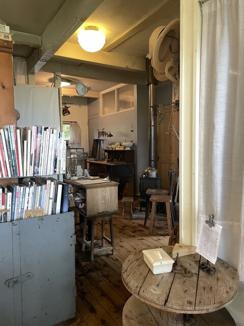 店内には様々なジャンルの本も置いてあり、自由に読むことができます。インスタグラムで写真は拝見していましたが、まさにジブリのような世界で、アンティーク食器や木の家具が絵本や映画の中みたいな雰囲気を出しています。ごちゃっとしているようで洗練されていて、惚れ惚れ。窓から見える緑も癒やしで、ぼんやりするのにも最適です。