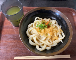 麺はコシ強め、だしは濃いめの味付けで美味しかったです。