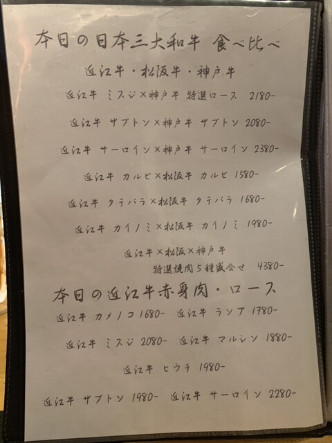 なんと、近江牛vs松阪牛vs神戸牛の食べ比べが出来るメニューがあって、
