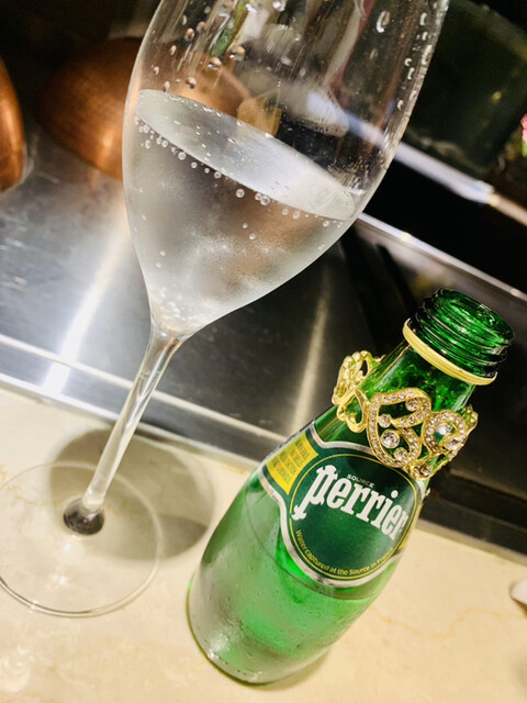 シャンパン(1,100円)とペリエ(650円)ですー(笑)