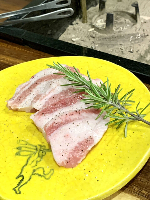 囲炉裏にローズマリーを焼いて、ハーブで香りづけ