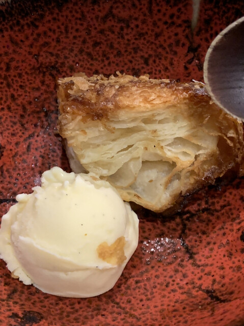 クイニーアマンを囲炉裏で温めて、バニラアイスと一緒に❣️