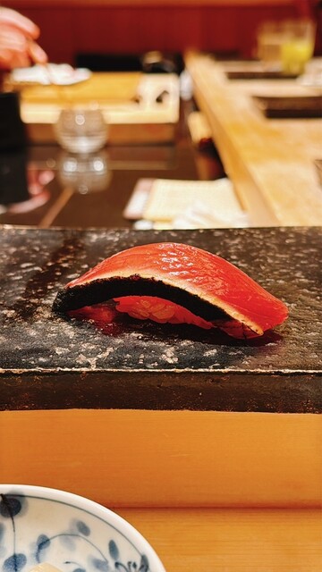 カウンターの中に立つのは、高梨さん。なんばさんの高弟として知られ、シャリとネタのバランスにおいては、東京の中でも屈指の巧みさだと思う。酸味、温度、口の中でのほどけ方——どれも主張しすぎず、でも印象に残る。静かで確かな技術。