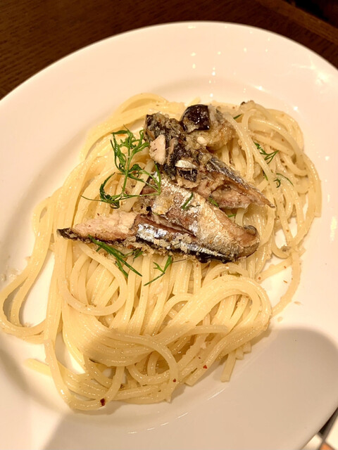 秋刀魚と茄子のオイルスパゲッティーニ1300円税込