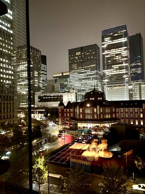 店内個室から東京駅のライトアップ