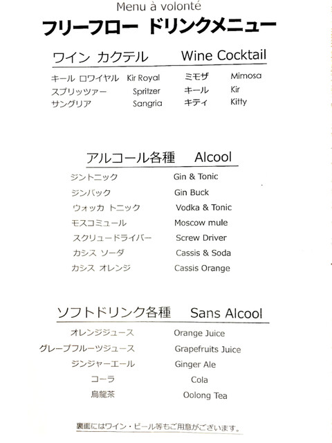 フリーフロー ドリンクメニューニ