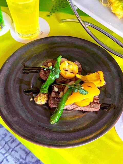 ️帆立貝柱のレアグリルとマンゴーのセビーチェ 青唐辛子とライム