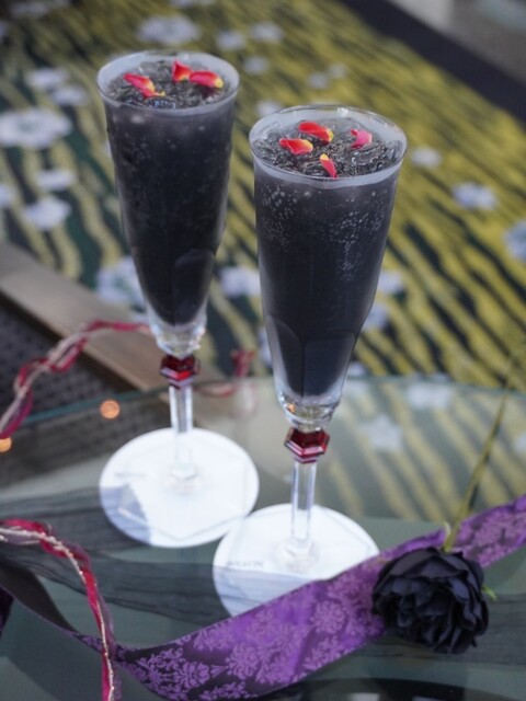 ハロウィンにピッタリの真っ黒な竹墨の入ったドリンク!