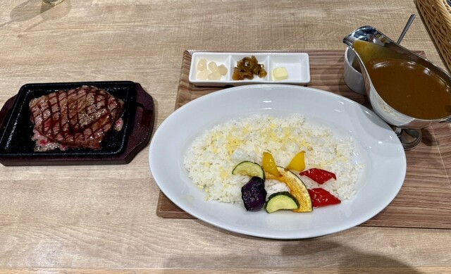 高い木の台に乗ったカツと、野菜がふんだんに乗った通常メニューにはない鮮やかなカレーで、