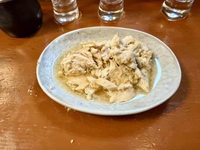 はじめに「神様おすすめセット」と書かれたマグロの中落ち+地酒セット」を注文しましたが、これがめちゃくちゃ美味しい!