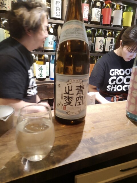 青空の麦。ノにあたる字はどう見ても「之」やノの変体仮名に似つかないので今も謎です…(@_@)これは岡山の南にある麦の畑に生産される麦を使って 醸造された珍しい岡山の焼酎です。ロマンスあるやな…!