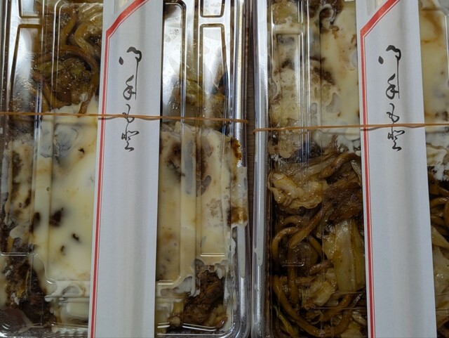 2人でお好み焼きと焼きそばをそれぞれ半分ずつ食べる為にも、半分ずつ詰めてもらいました。