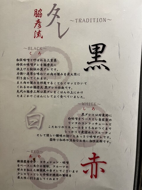 濃厚な味わいの黒ダレ、白味噌ベースのフルーティーな白ダレ、コチュジャンや味噌ベースの赤ダレ