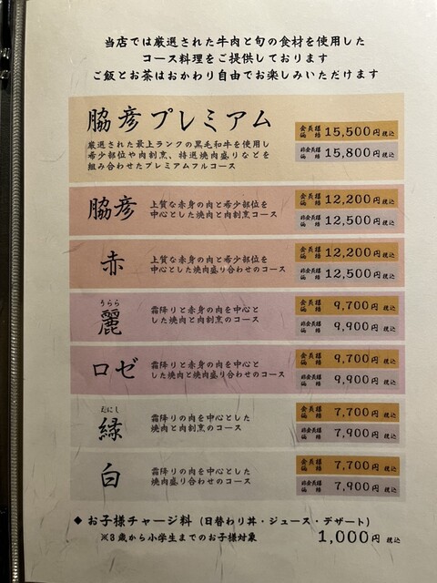 上質な赤身のお肉と希少部位の焼肉と肉割烹の脇彦コース