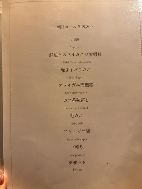 ズワイガニ、イバラガニ、毛ガニなど数種類の蟹を色々な食べ方で楽しめてほんとに蟹づくしの大満足なコースでした!